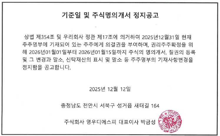 | 66 | 기준일 및 주식명의개서 정지공고 | 25-12-12 |
