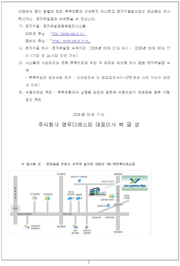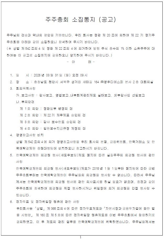 | 71 | 영우디에스피_주주총회소집공고 | 26-03-11 |