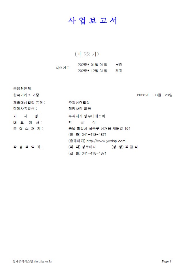 영우디에스피 사업보고서 |